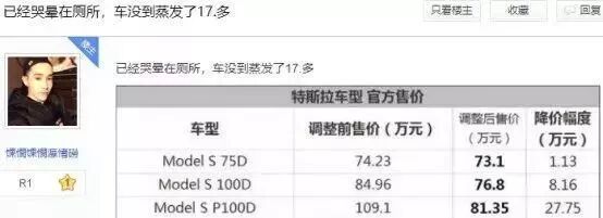 “花了一百多万买的特斯拉X,车牌还没上,直接降到80万,这个降价幅度,实在难以接受 。”
