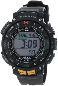 这款Casio 卡西欧 PAG240-1CR 探险者 男款 太阳能腕表 ,属于卡西欧旗下Pathfinder探险者系列,是一款能够提供户外全数据的腕表。它不仅能在100米以内防水,还内置了海拔高度、气压和温度感应器,可承受零下10℃低温。单键就能测量方向,表盘上彩色的字母就是分别标志着东南西北4个方向。采用太阳能驱动,并安装了一块充电电池,能通过太阳能充电。