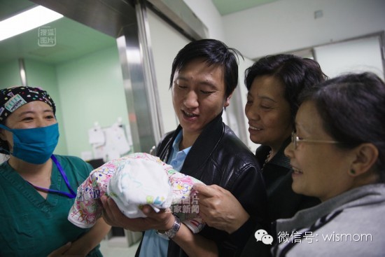 [p=24, null, left] 2014年4月14日凌晨00:29,10分钟前刚刚升级为父亲的丈夫黄健(右三)抱着医生送出来的儿子,与家人一起分享做父亲的喜悦。 [p=24, null, left]