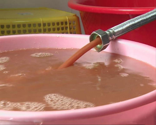今天楼主决定拆开来研究看看! (请勿模仿,注意安全!) ★切记切记千万第一步要做的就是切断电源! 关闭三角阀门后拧开冷热水口的螺帽……楼主手忙脚乱半天,总算把热水器里残留的水流出来了。一起来观摩一下我这台三年不洗的热水器内胆里流出来的是什么样的水。 这是刚开始流出来的水......楼主看了看赶脚还可以的嘛,很干净说~ But,五分钟后流出来的水突然变得好诡异……我去,吓屎楼主了好咩!! 眼见着这砖红色的脏水足足装满了一个水桶!喏,闻起来还有点像蔬菜腐烂的味道!恶。。。 楼主实在不敢想象原来我每天洗澡的水竟然是如此脏!浑身挠痒的冲动有没有…… 好忧桑啊!到底是怎么了?天!呢!原来楼主每天都是在用泥土一样脏的水洗澡啊!!! 那为什么洗澡水看起来是干净的? 看到这,肯定有小伙伴要问了,热水器里面的水如果这么脏,为什么洗澡的时候,大家看见的水还是干净的呢?跑去请教了这方面的专家,经过他的讲解,我给你们看看示意图: 原来,热水出水口在内胆顶部,而冷水的进水口,在内胆的底部。洗澡的时候,冷水不断进入热水器内胆,热水被挤压到顶部,而水垢却在内胆底部附近沉淀下来,所以你看到的水是在顶部的干净水。 热水器里的水垢长久不清洗会怎样呢? 专业人士说:附着在加热棒上的水垢,会阻止电热水器的有效换热,导致加热变慢,而且水垢占了内胆空间,热水器储水量会越来越小。(这也就解释了,为什么有些人家里热水器的热水完全不够洗澡的问题哈)所以建议,热水器每隔3年要深度清洗一次,清洗时,需要由专业维修人员来操作,自己不要勉强去拆,装不回来肿么办?!清洗费大概在100块钱左右。 |