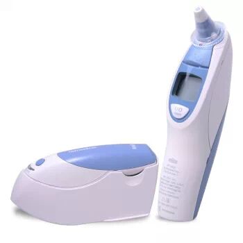 耳温计根据耳膜释放的红外热波读数,测量精度也很高,它最大优点是测量时间不到2秒,不需要孩子长时间配合。