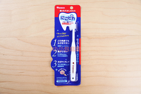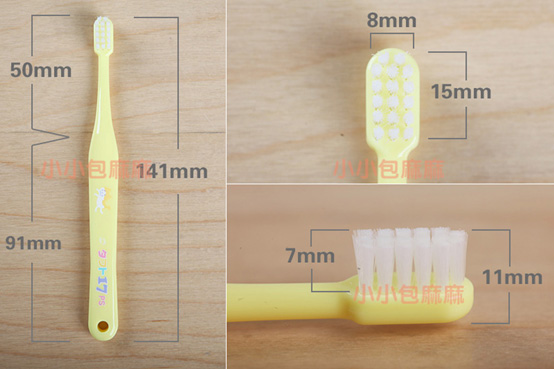 这款牙刷号称是日本齿科专用产品适合1-7岁的宝宝,刷毛本身非常柔软(比巧虎的还软那么一点点),刷头很小巧,刷毛的长度也很短,非常适合低年龄段的小宝宝,唯一不爽的是刷柄整体比较光滑,没有做防滑处理,握起来总有点不踏实。