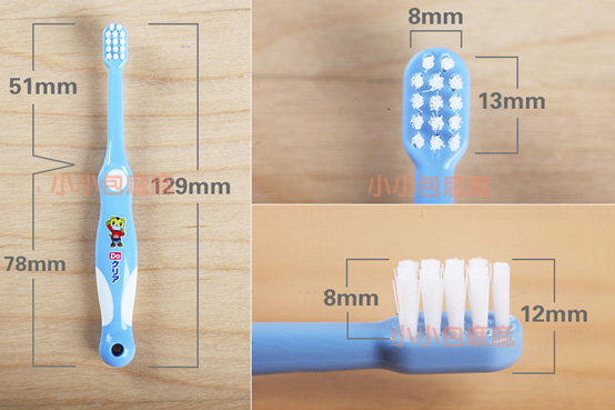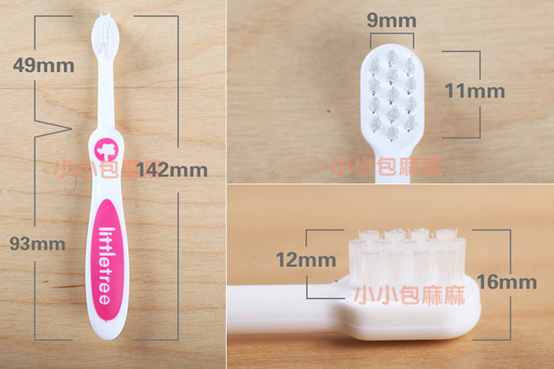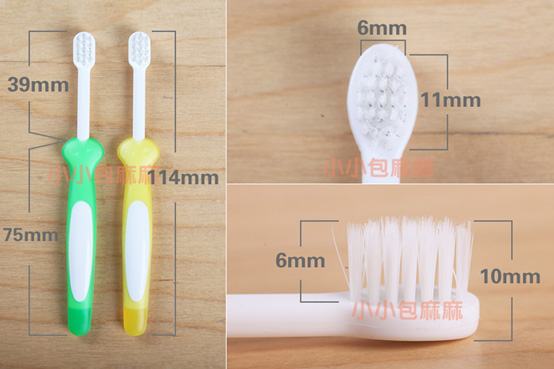 这是最需要考虑的点了,差别真的很大,大刷头效率高,但是对口腔后部的牙齿清洁起来就会比较费力,小牙刷呢就刚好相反,边边角角都可以刷到,但是会更加费时,要是宝宝不配合,效率会较低,我的个人感受是2岁左右的小宝宝要使用小刷头的牙刷,父母多些耐心帮他们刷牙。