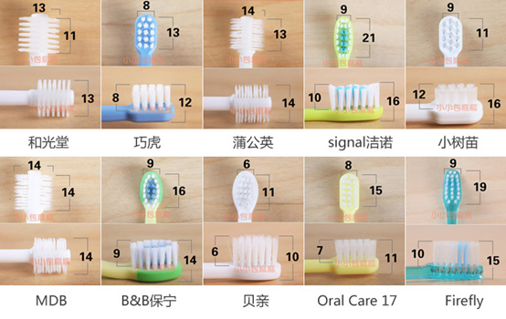 最后上个全家福,大家可以通过这个图片很直观的了解这些牙刷的高矮胖瘦,出场的选手的顺序如下: