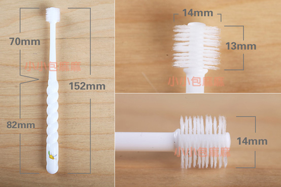另外蒲公英的入口部分设计的比较长达到了70毫米,而且也没有防呛盾设计,没有前端握点,用起来总感觉有点打滑:P,小宝宝掌握起来可能会需要多些适应时间,好在是360度设计,不管怎么转都能刷到,个人感觉不太适合低龄宝宝使用。