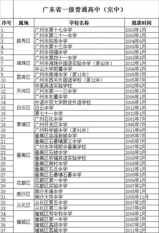 目前,广州还有一批经过广东省教育督导室评选认定(2014年前)以及广东教育督导会评选认定的(2017年后)的广东“省一级普通高中”