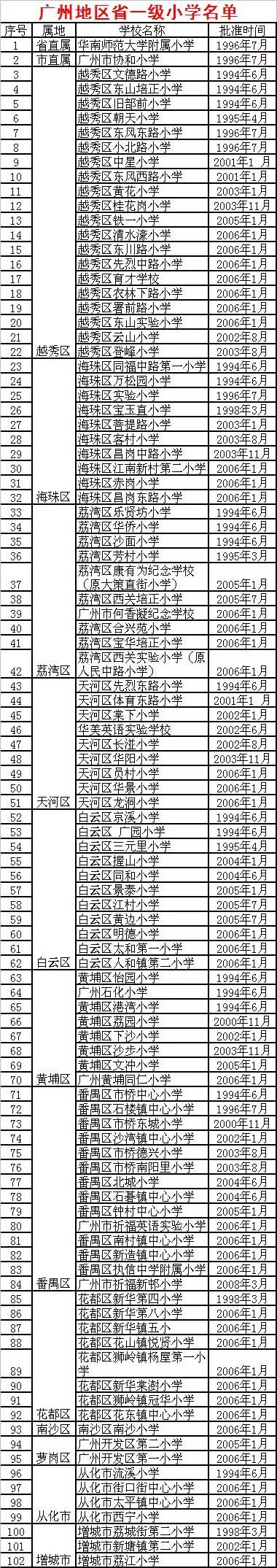广州有102家“省一级小学”,这些学校一般是在2006年之前评选的。