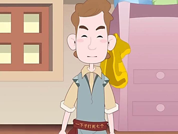一个早晨,小裁缝坐在靠窗的台子旁,正在缝制一件背心。忽然,他发现几只苍蝇落在了他的果酱面包上。他拿起毛巾朝苍蝇挥去,一下子打死了7只。