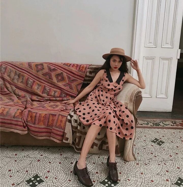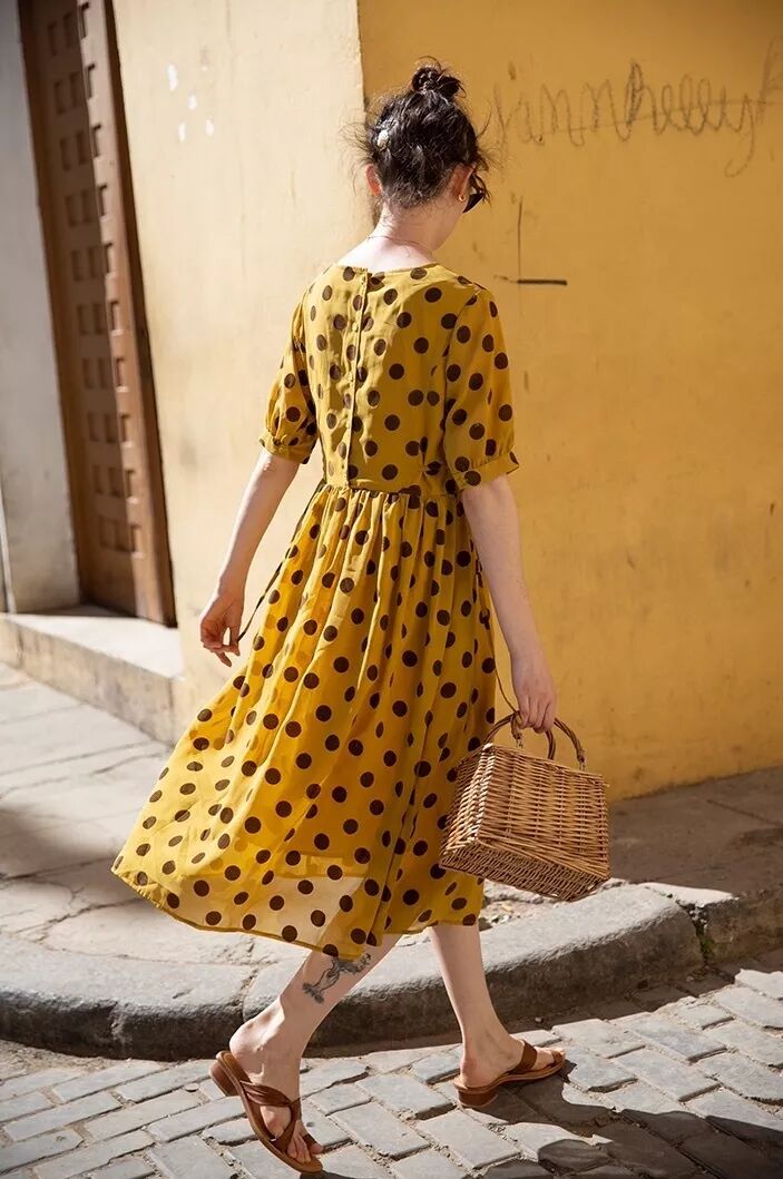 挑选色彩鲜艳的波点,例如红色/橘色/蓝色/绿色等,特别适合春夏,可盐可甜,既充满活力也很小清新,拍照也很上镜。
