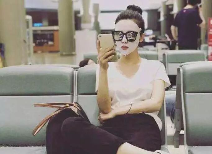 看看宁静和李冰冰机场候机都不忘敷面膜