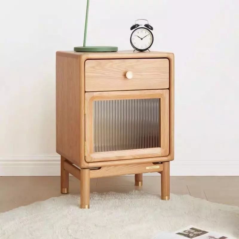 实木自带的清新调性,搭配质感很好的黄铜金属和长虹白玻。既照顾到通透性,又保留隐秘性,一抽高格的设计也非常贴心,满足不同的收纳需求。