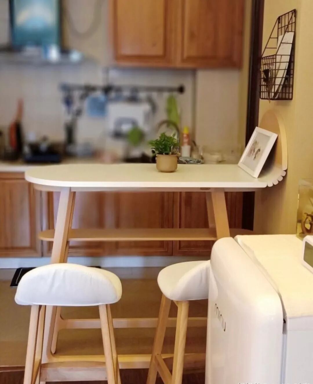 纯白与原木的组合,如云似雾,对镜贴花黄的片刻