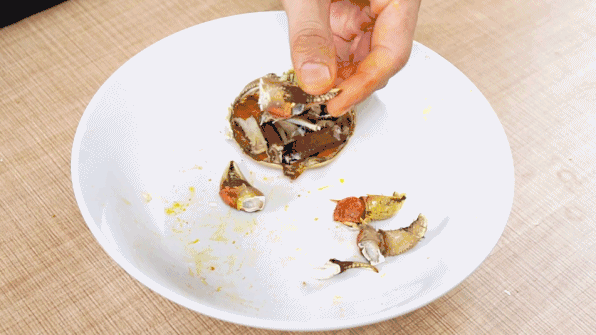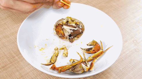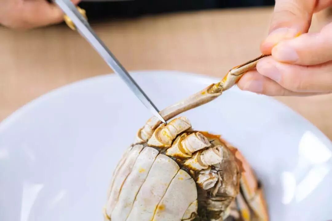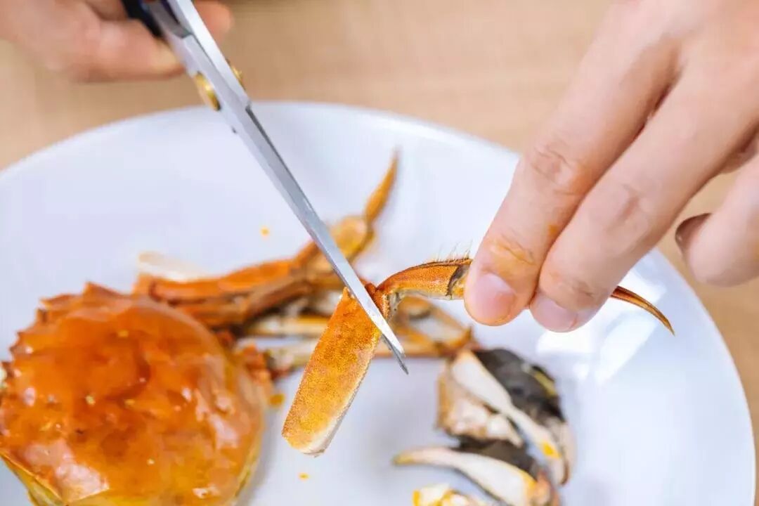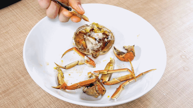 20.就可以轻松用筷子把蟹钳里的肉推出来了。