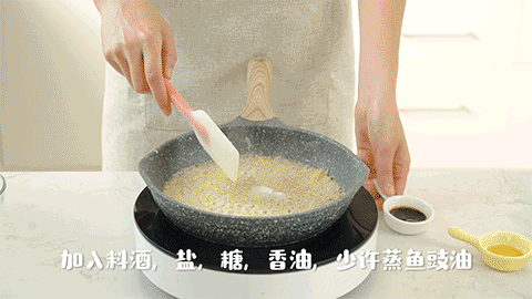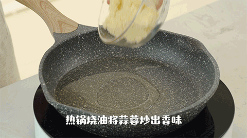 4. 热锅烧油,放入蒜蓉翻炒,直到炒出香味