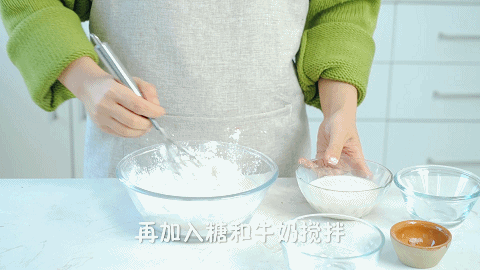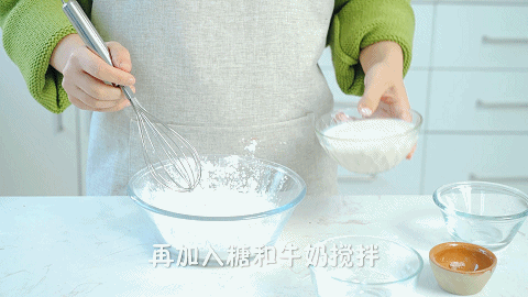 5、继续加入20克糖和200克牛奶,并搅拌至无颗粒状态
