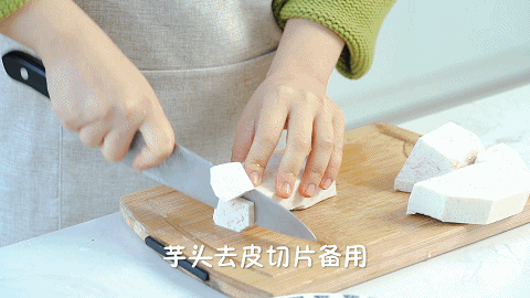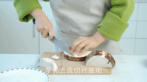 1、将芋头去皮后切片备用