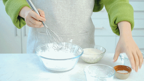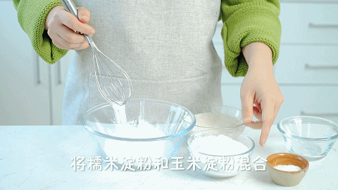 4、这时候我们做麻薯部分:将30克玉米淀粉和100克糯米粉倒入碗中