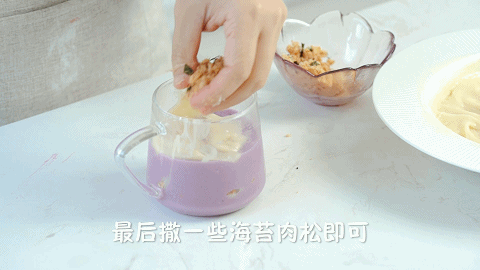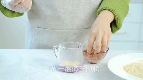 16、然后重复芋泥、麻薯和海苔肉松的顺序