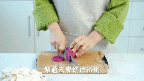2、将紫薯去皮后切片备用