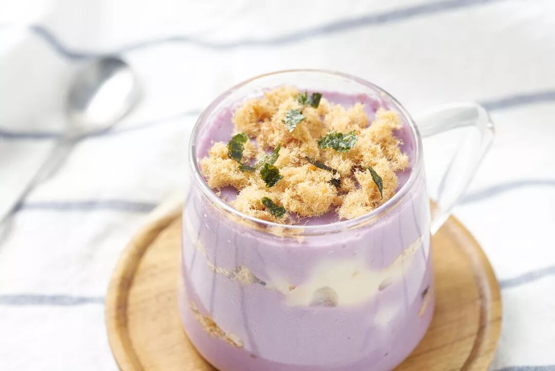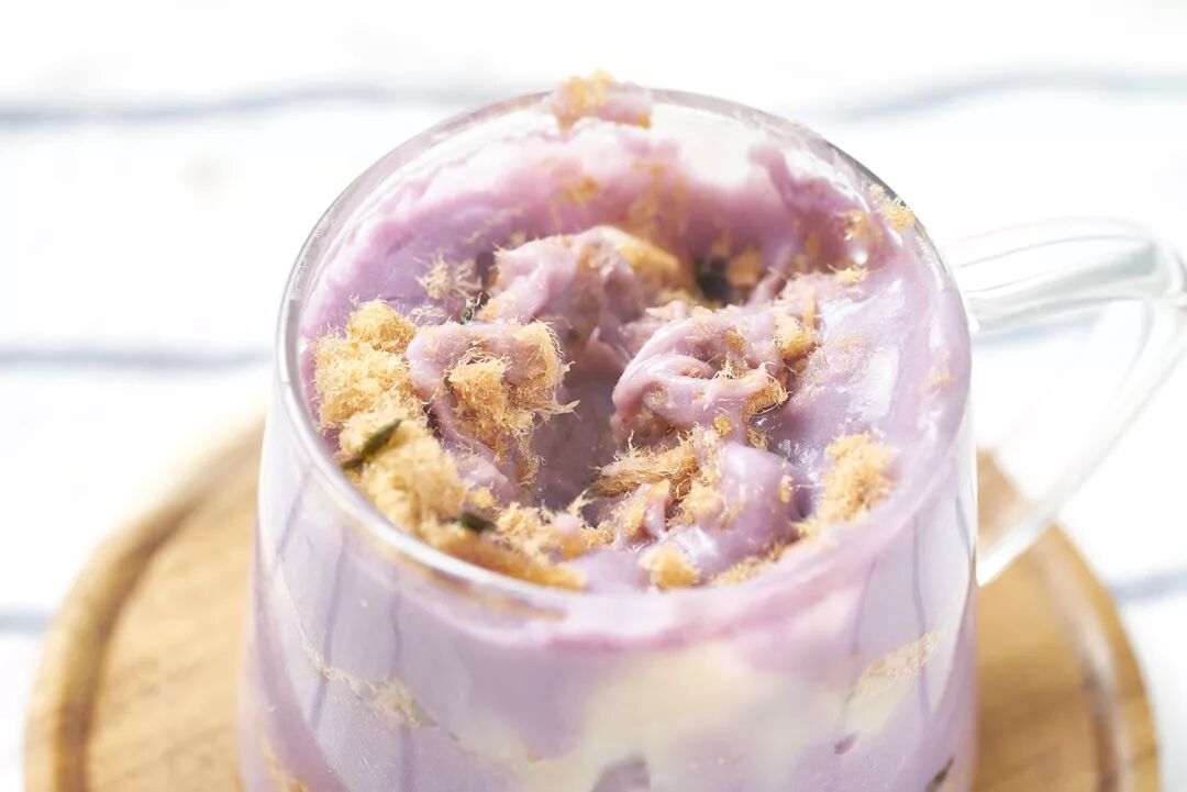 温柔淡雅的浅紫色,黏而又滑的美妙口感,再加上香浓无比的芋奶香味,都是吸引人的地方呀。