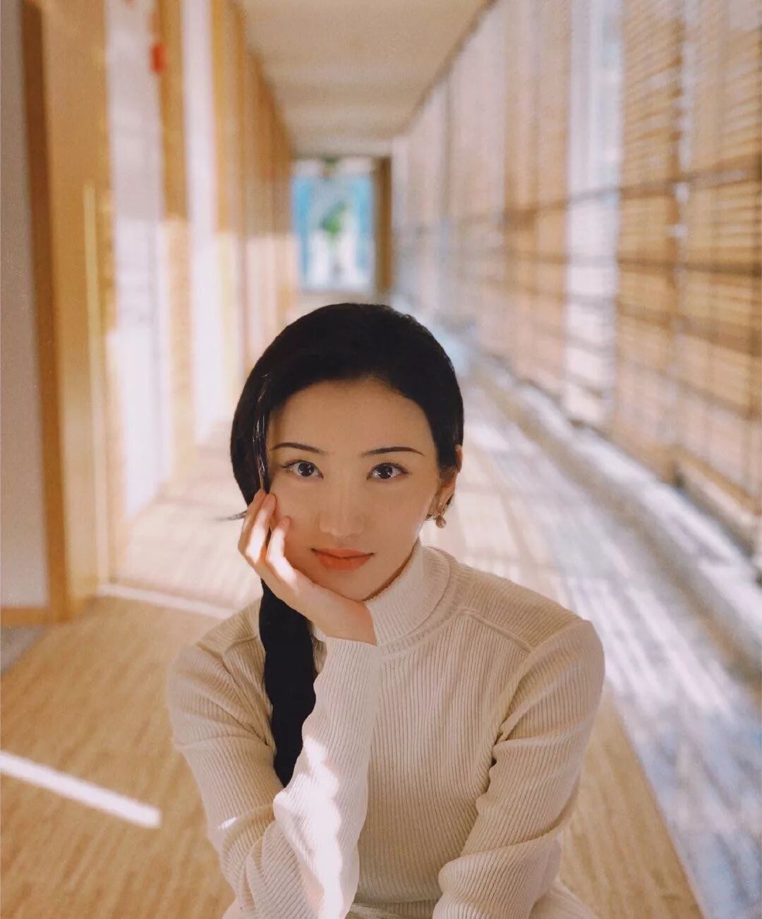 大甜甜的皮肤也是出了圈的白。我们也可以参考大甜甜选一件白色的高领毛衣。白色和白色的碰撞把温柔优雅都给带出来了。