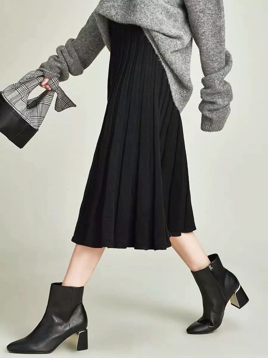 HAVVA黑色百褶裙中长裙秋冬 542RMB | |