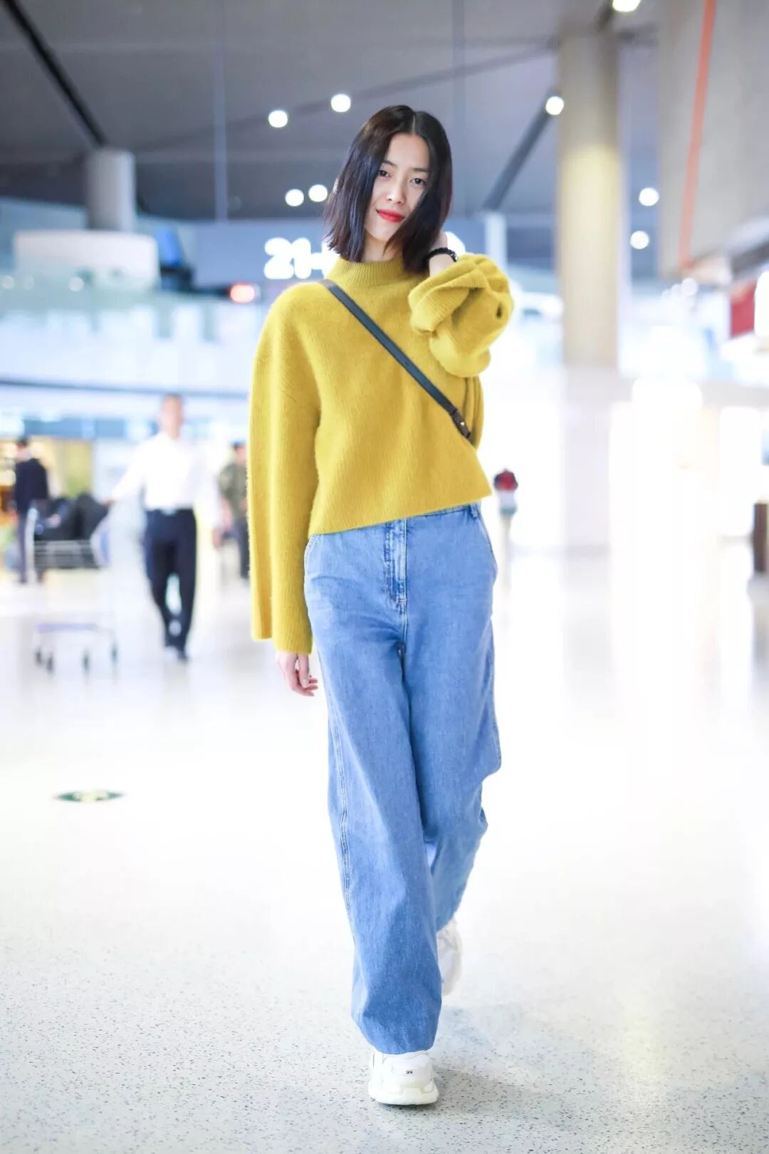 又或者是阔腿型的牛仔裤,和紧身牛仔裤不同的是,这样穿会增添几分慵懒随性感,配上一双白色的运动鞋也可以,减龄的同时穿出青春活力感。