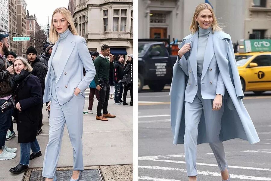或者再看看大表姐,选一条稍微紧身一点的西装裤,和同色系高领毛衣搭配在一起,再加上一件亮色系的外套,隔着屏幕就感受到了满屏的少女青春感,日常感叹,她太会穿了吧!!