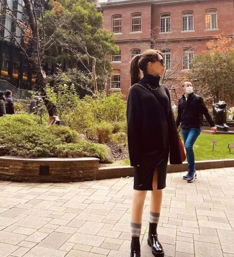 想要多点亮点,就学学大嫂吧!一条开叉的不规则裙子,再配上一双短靴,就像她自己说的那样,简单舒适的穿搭也能同时保持时尚感~!不愧是Jay的老婆,呜呜呜!