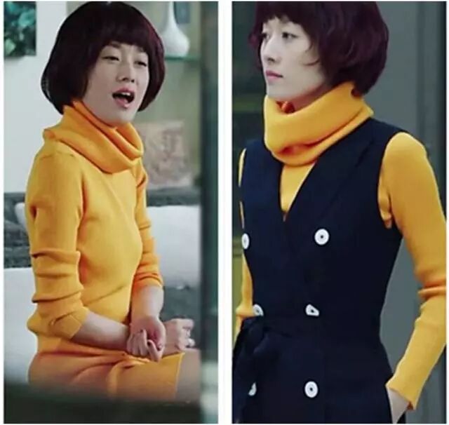 看看我们明玉的这件黑色高领内搭的穿法。是不是有时尚又有女强人的味道呢?作为职场女性的你怎么能错过。