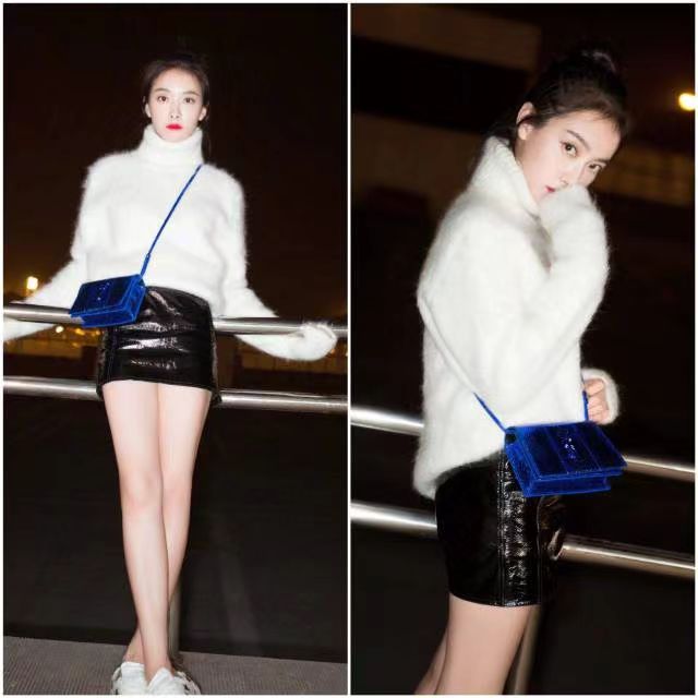 短裙也是很好的选择哦。像宋茜这样,选用经典的黑白撞色,完全不会踩雷。上身宽松的高领毛衣配上皮短裙,虽然还是会有点冷,但这样一看,真的有腿长一米八效果哦~!