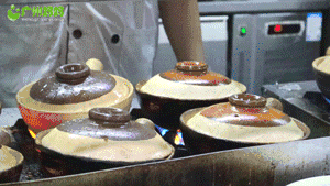 见厨房小哥一阵间淋水,让蒸汽逼熟肉类