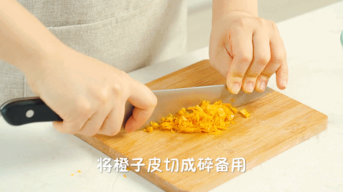 1、先做蛋糕胚:将1个橙子洗净后削皮,然后切成碎备用
