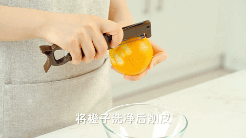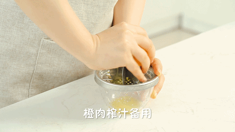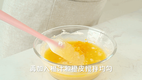 8、再加入步骤2的橙汁和步骤1的橙皮搅拌均匀
