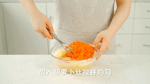 9、加入步骤3的胡萝卜丝搅拌均匀,胡萝卜面糊就做好了