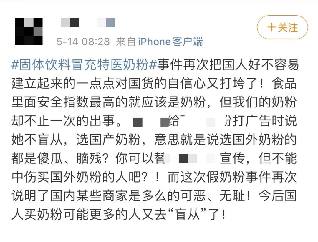 而这次事件的发生,导致网络上又出现了诸多指责国产奶粉品质低劣,号召大家不要购买国产奶粉的声音。
