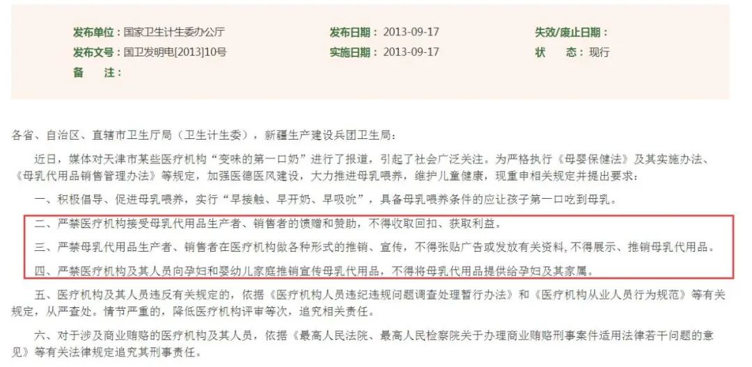 ▲《食品药品监管总局、国家卫生计生委、工商总局关于进一步规范母乳代用品宣传和销售行为的通知》