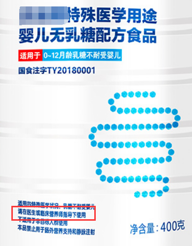 ▲特配粉包装上也注明“需在医生或临床营养师指导下使用”
