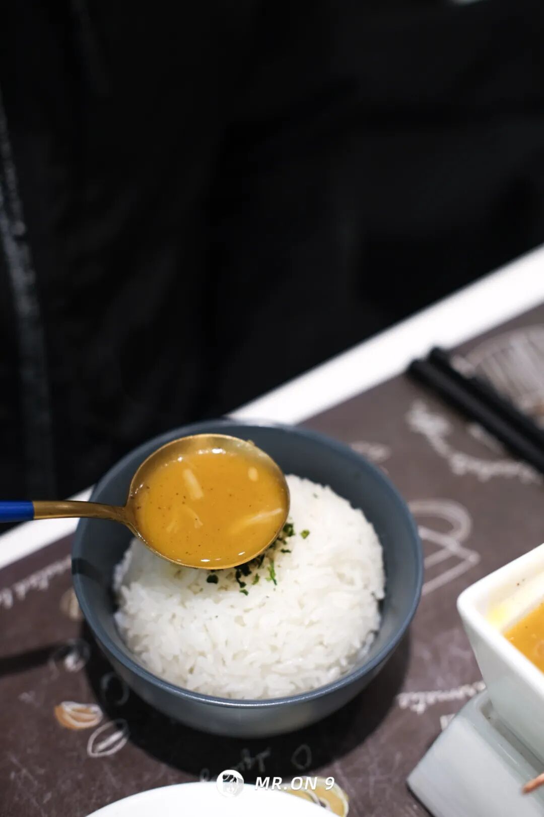尝一口,汤汁伴饭,感觉到汤汁才是整个菜的灵魂。汤汁却格外温润,感觉很轻松,和食材有一种反差感。