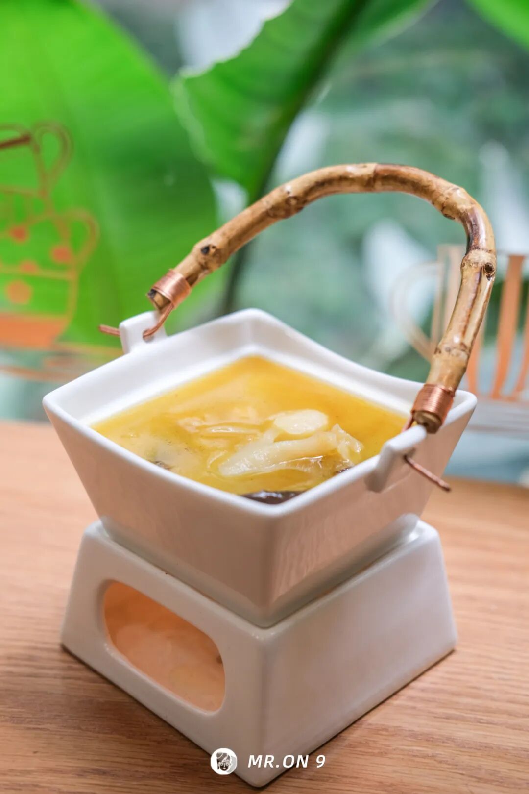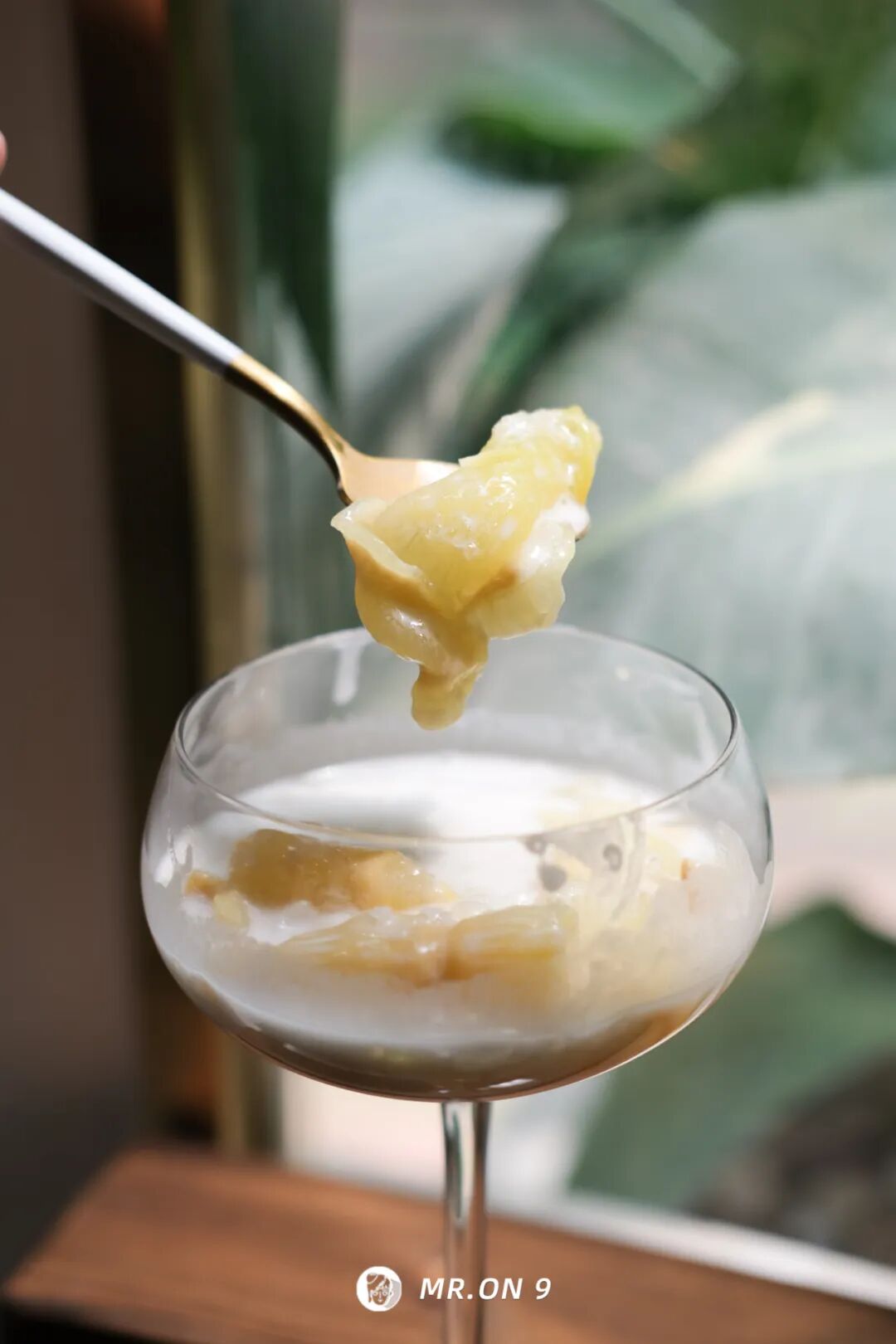这个椰浆花胶是没有放糖的,依靠椰浆自身的微微甜度撑起来,是少糖人士的菜。