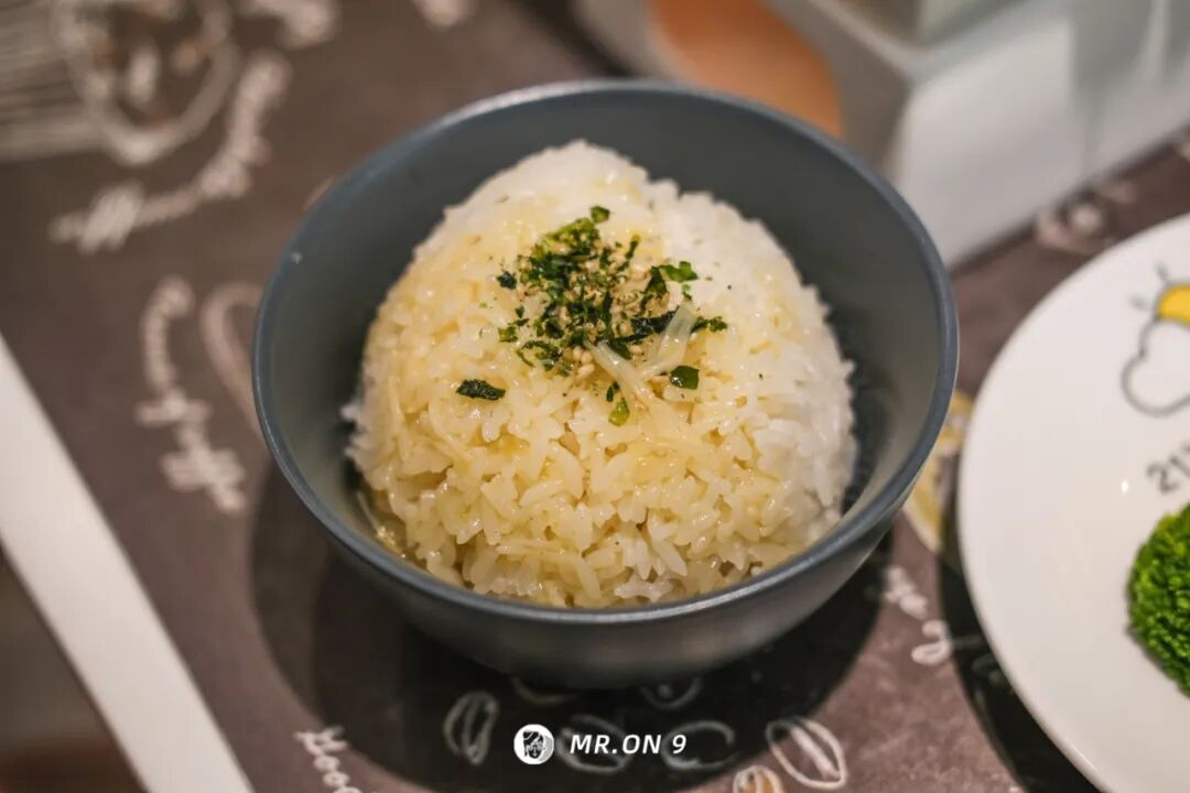 饭和菜是分开的,米饭用的五常大米,肉眼可见的粒粒分明。