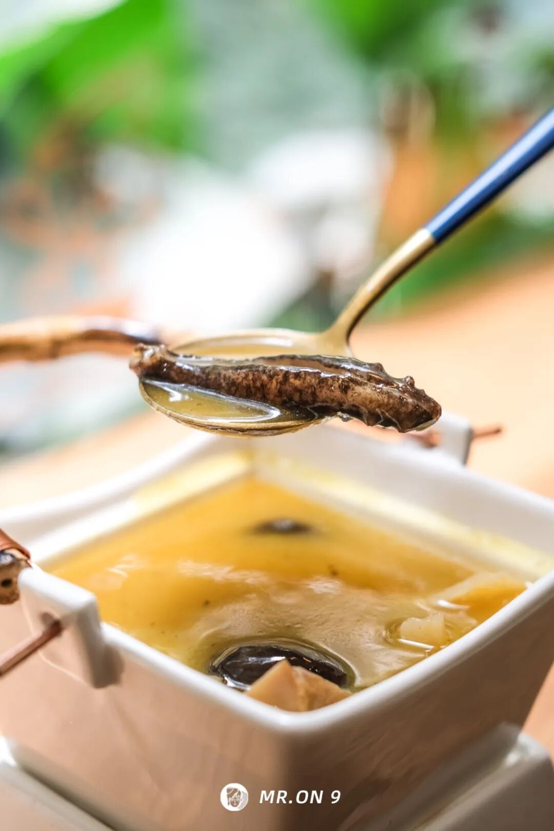 用小炉子加热上的,花胶和海参看上去大大的一块,质感很够,介乎于软身又有小小爽口之间。