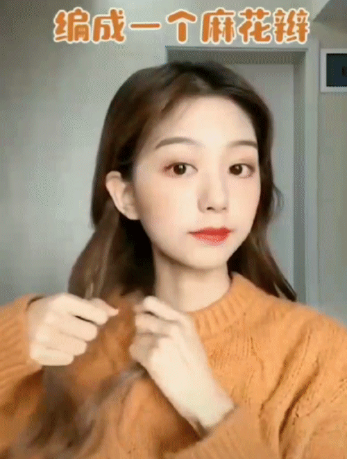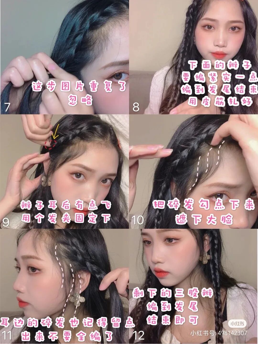 2、耳朵下面的辫子则重复三股辫的编法,一直到发尾结束,然后在额头和耳边扯些碎发出来修饰大脸,完成!