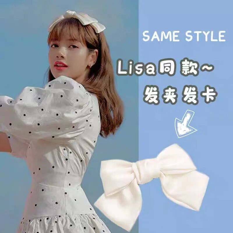 缎面的大白色蝴蝶结发夹,适合戴在刘海分界处,搭配同色系的裙子真的太仙。