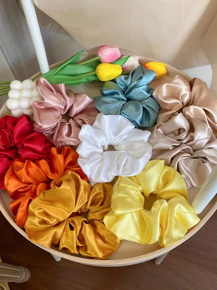 纯色缎面的款式,更有慵懒高级的法式味道,偷偷告诉你们,大肠发圈贼显发量多哈哈哈。