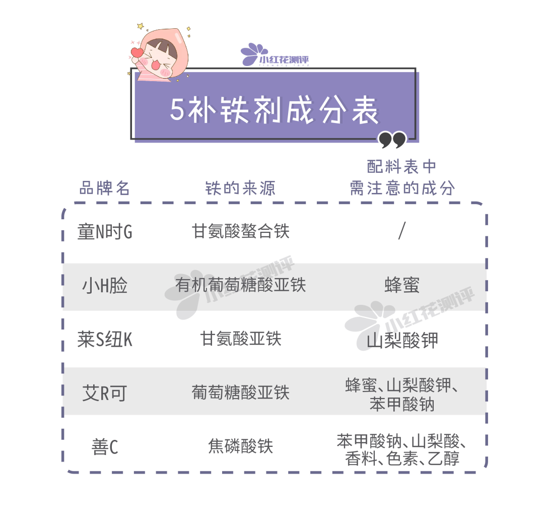 小H脸、艾R可为二价铁,较好吸收,其中小H脸还添加了促进铁吸收的维生素C;