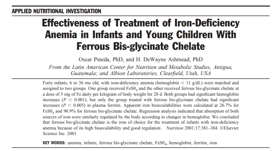 ▲摘自:Effectiveness of Treatment of Iron-Deficiency Anemia in Infants and Young Children With Ferrous Bis-glycinate Chelate