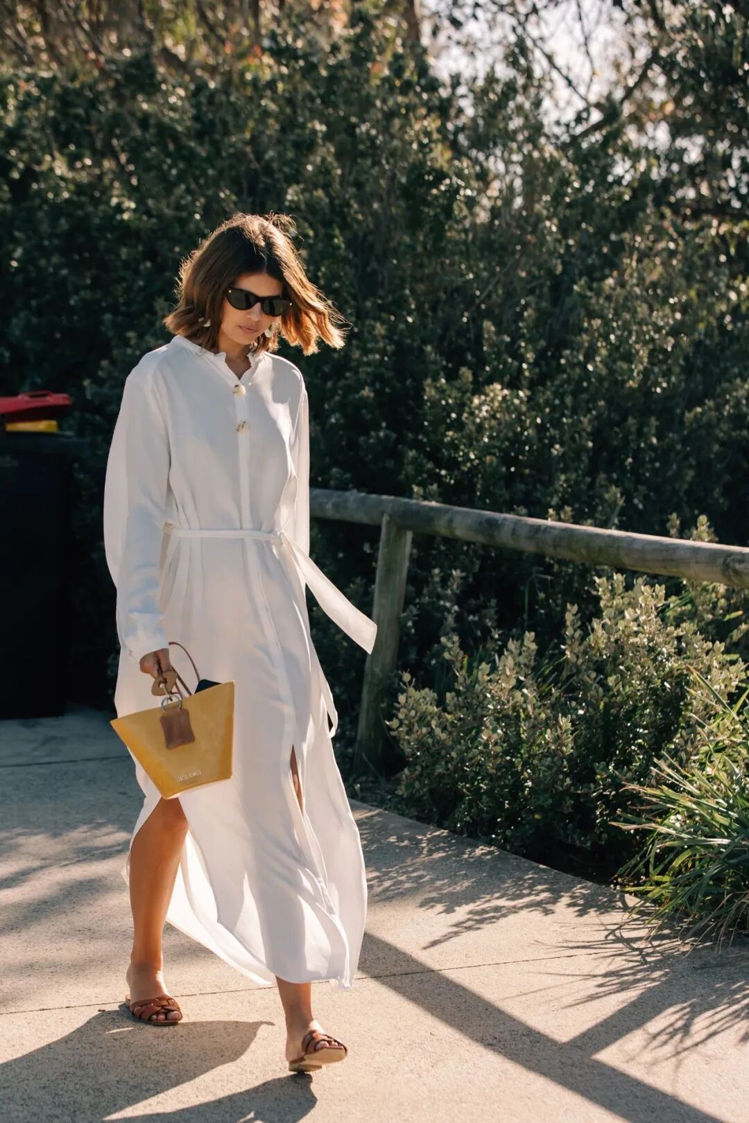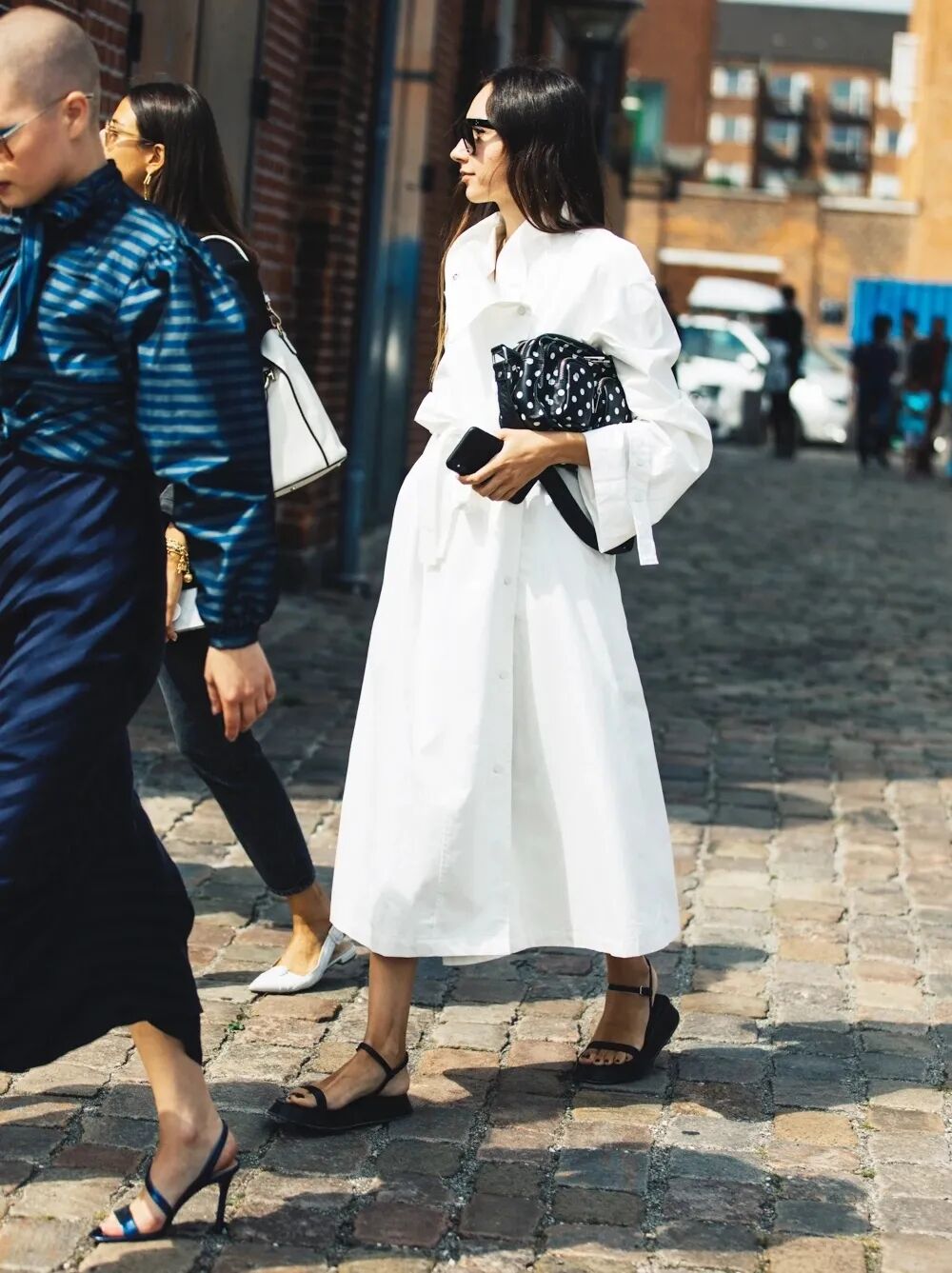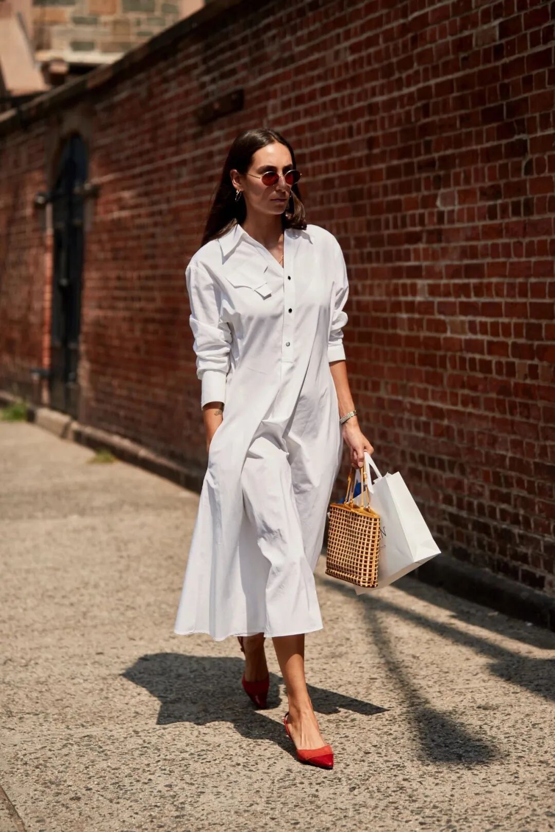 衬衫连衣裙是一年四季都流行的单品,特别是纯白色的,穿起来走路带风,连路人都忍不住感慨一句:“姐姐好飒!”