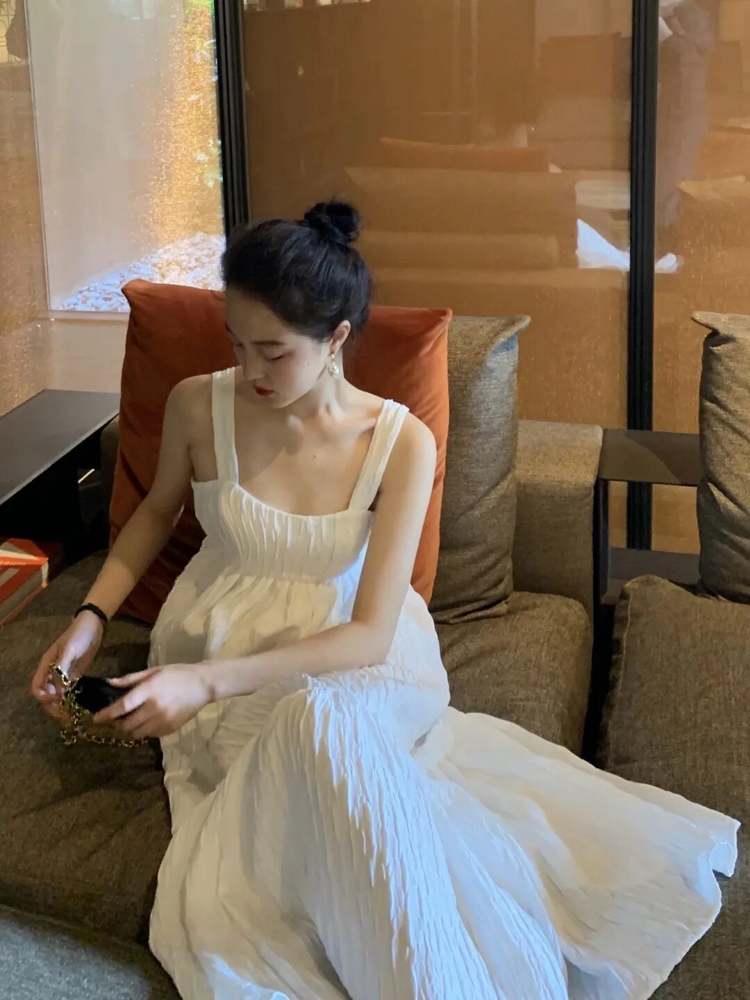 吊带小白裙是夏天旅行的必备单品,草原、沙漠、海边、森林,它都hold得住。