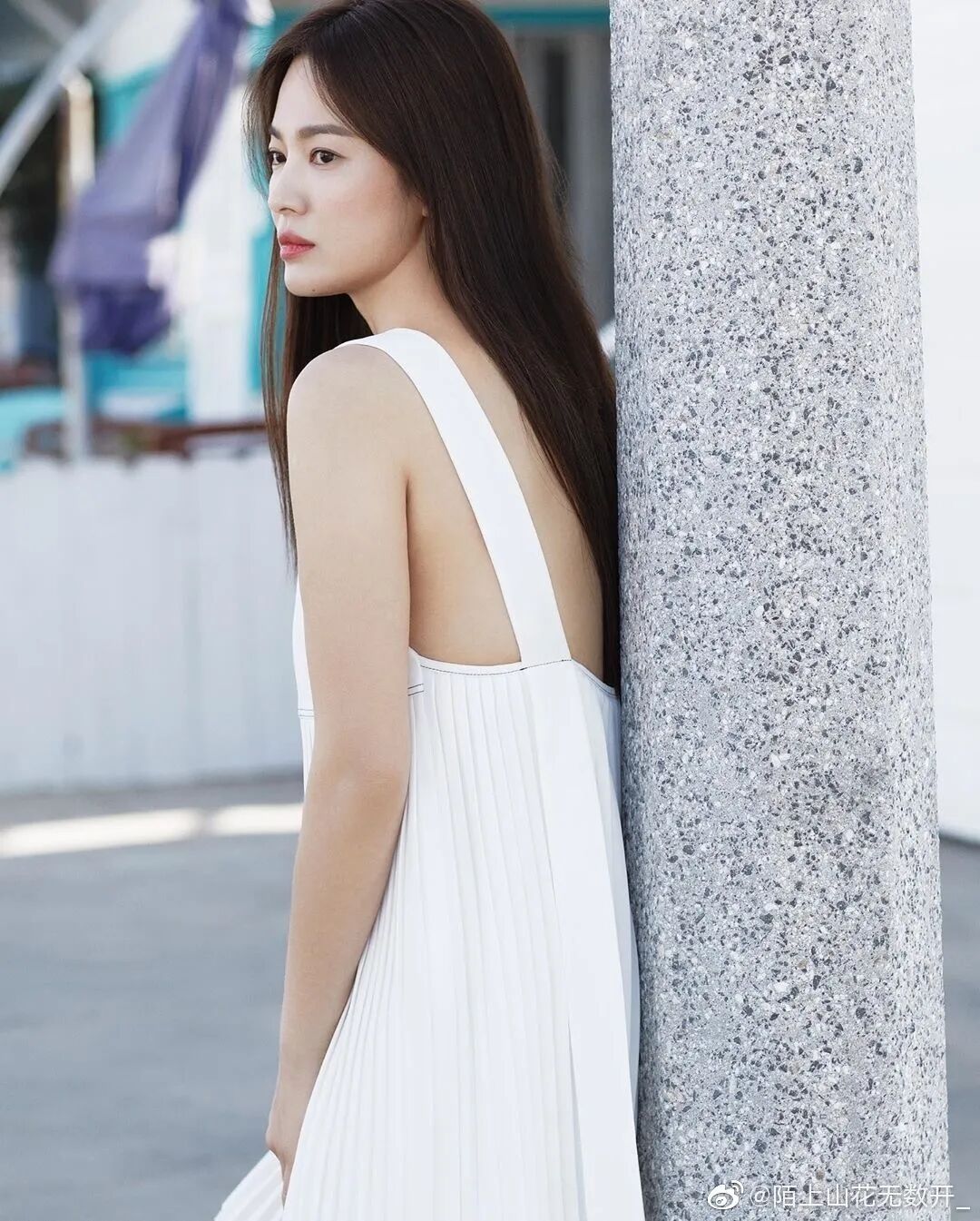 还可以穿它去拍夏日写真,像唐艺昕这张照片,清新又干净,太治愈人心了。